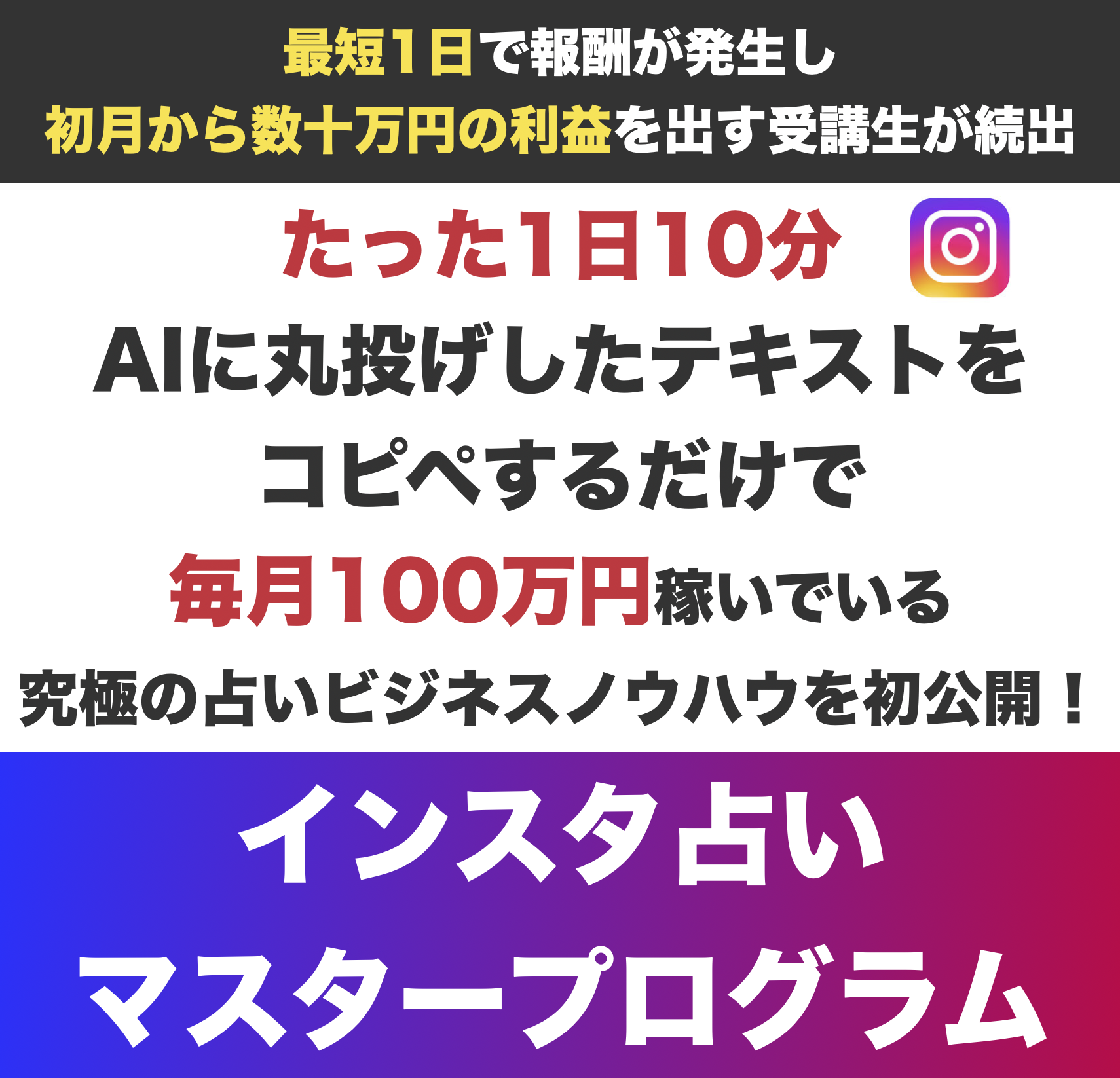 インスタ占いの収益を最短で生み出せる特典をご用意しました。